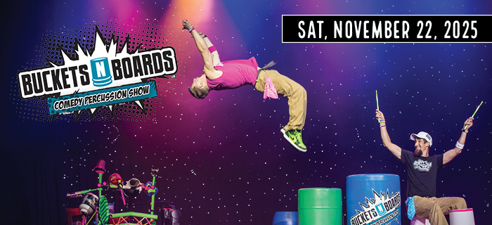 Regarded as a must see show for any evening out with the family! Their unexpected comedy, upbeat personalities and improvisational audience interaction make Buckets N Boards Comedy Percussion Show a theatrical experience you’ll remember for years to come!